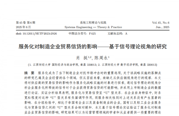 近年来,肖挺教授团队聚焦制造业服务化这一前沿研究领域,深耕细作、持续探索,在该领域取得了一系列...