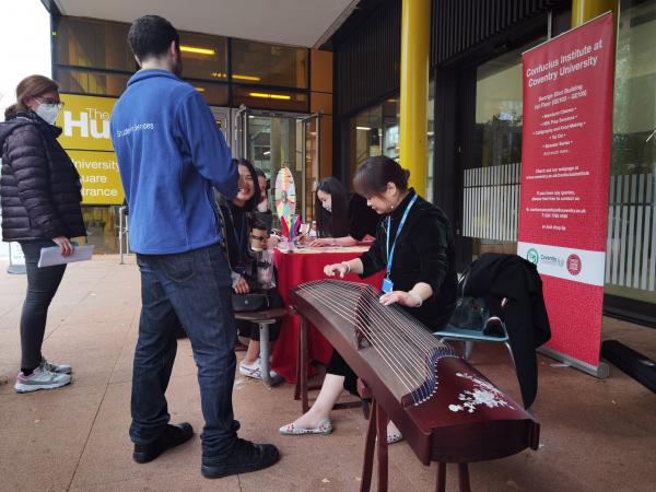 考文垂市议员、市长John McNicholas出席本次启动仪式,考文垂大学孔子学院中方院长刘有发教授和首席运营官George参加相关活动。本地大中小学生登台助兴,演唱各国歌曲,展现不同语言的文化魅力。来自英国文化协会、考文垂大学孔子学院及歌德学院等各国语言教学机构纷纷摆出展台,展现各具国别特色的文化元素。考大孔院老师在现场演示了古筝乐曲、剪纸、踢毽子、京剧脸谱、葫芦丝等体现中国传统文化特色的节目和物品,吸引了大批中小学生和参会者驻足参与。(文/王妤彬 图/刘有发 编辑/陈梦璐 审核/舒佳珠 姜莹 李大晖)