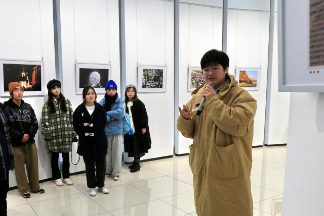 “用相机对着同一个角度,不同的参数一直拍摄练习,一定能拍到经得起千锤百炼的好作品。”2月23日下午三点,“文明之光”校园摄影大赛优秀摄影作品展在学校博雅艺术中心开幕,同时也是一堂生动而精彩的“美育大课”。