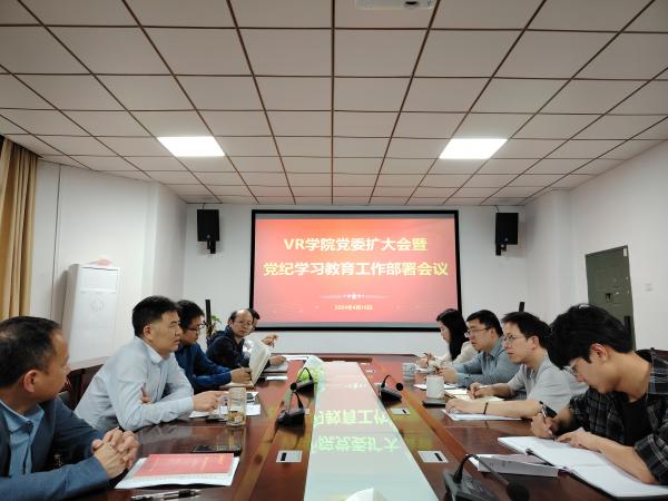 4月16日下午,虚拟现实(VR)现代产业学院召开党委扩大会暨党纪学习教育工作部署会。