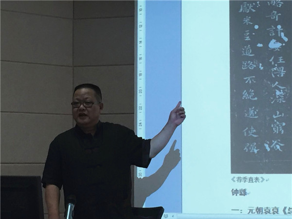 黄健松饱含激情,以自己对特有的中国书法的深刻理解为基点,通过介绍几位比较重要的书法大家,以此来向同学们阐述了魏晋唐时期小楷的发展脉络。