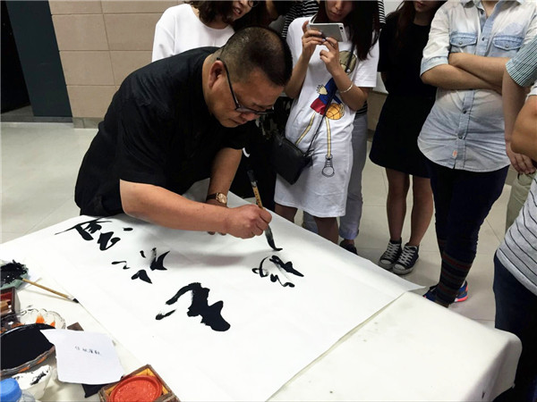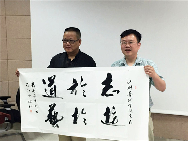 游于艺”,将书法运用展现在师生面前,并分别赠送学院和学生墨宝。