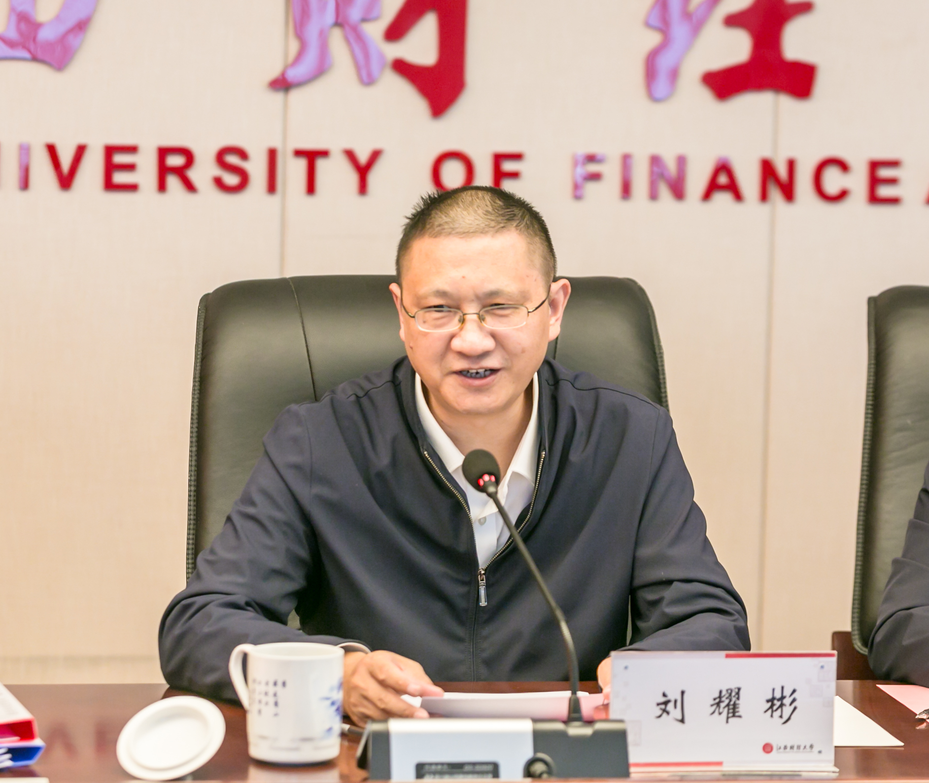 刘耀彬在致辞中对佟志臣一行的到来表示热烈欢迎,对中国银联江西分公司长期以来支持我校发展表示感谢。刘耀彬简要介绍了我校办学成就并回顾了双方合作开展情况。他指出,深化校企合作既是学校汇聚社会资源、提升办学水平的重要契机,又是服务国家战略、赋能江西发展的责任担当。未来,双方将以校园金融信息化建设为切口、以新型智库为平台、以前沿课题为纽带,助力行业技术应用迭代与模式革新,为江西金融高质量发展注入强劲动能,共同书写校银协同、共促发展的精彩篇章。