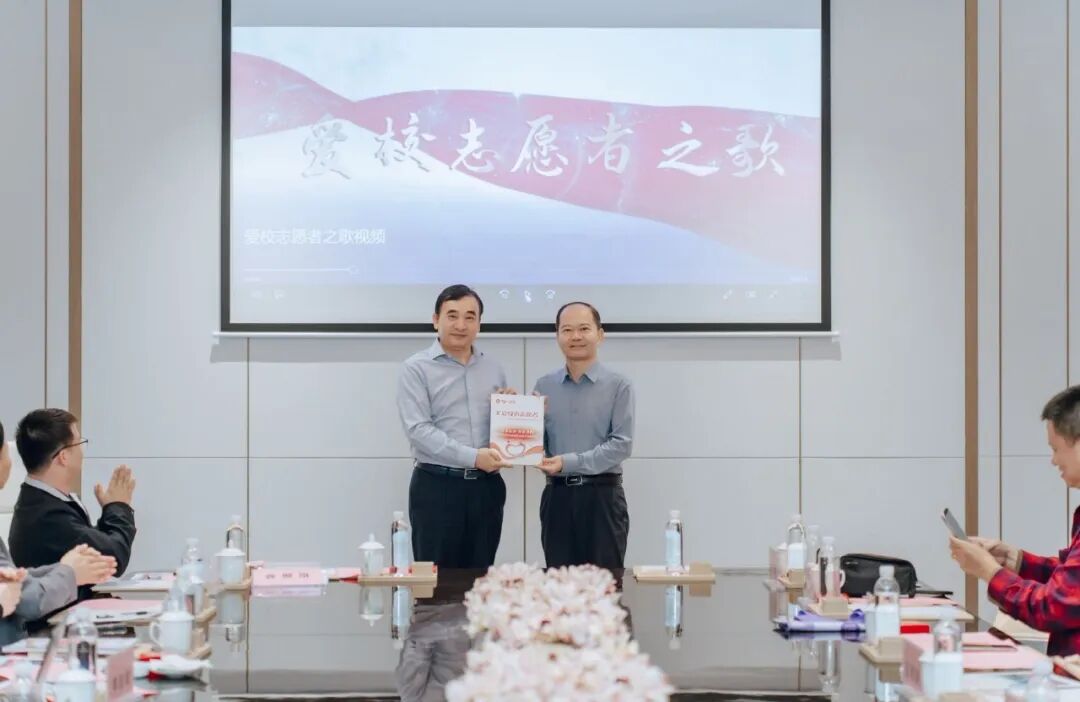 会议特设“爱校志愿者基金”工作总结与倡议环节。学校教育发展基金会秘书长夏贤锋阐述了基金设立的初衷与阶段成果,强调了校友工作与基金工作融合发展的重要性。李春根代表学校向陈新赠送了《江西财经大学爱校志愿者基金发展报告1.0》,感谢其为校友工作及基金工作作出的卓越贡献。随后,会议宣读了《江西财经大学爱校志愿者基金倡议书》,号召更多校友加入爱心接力。