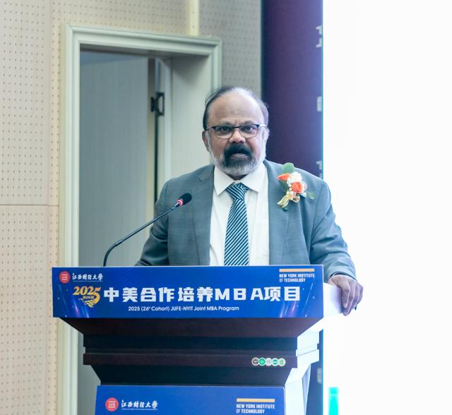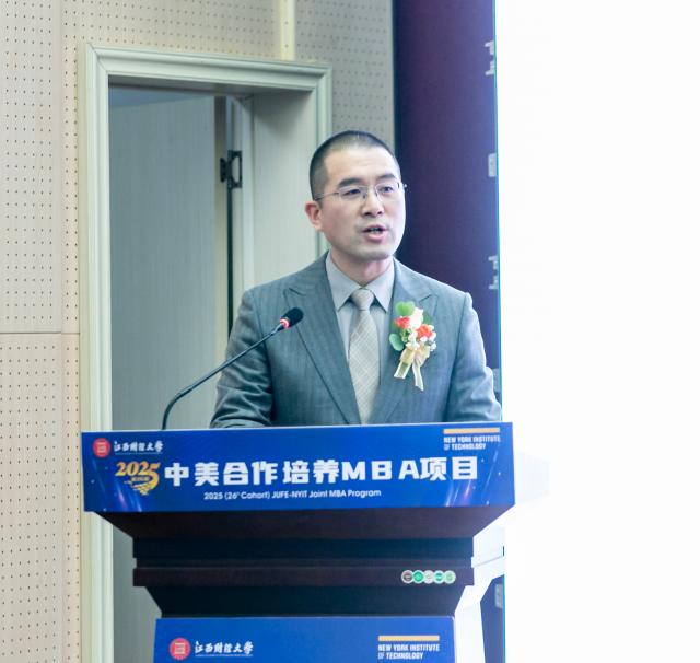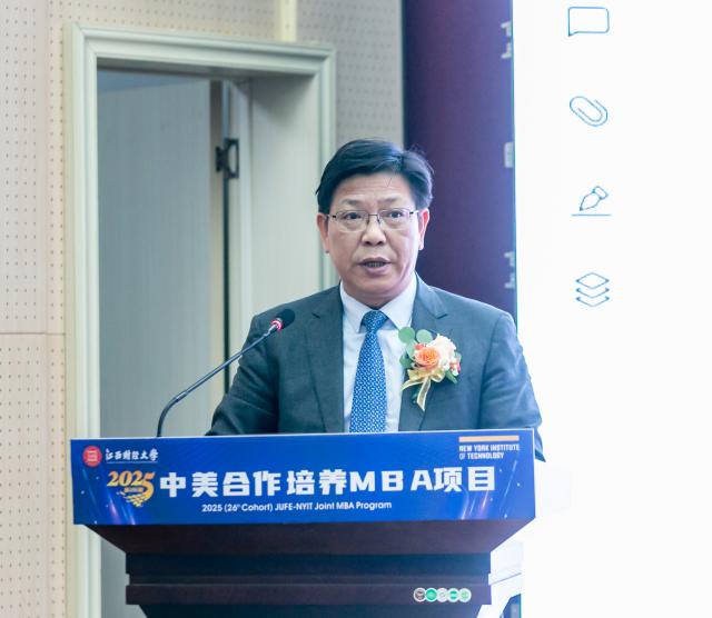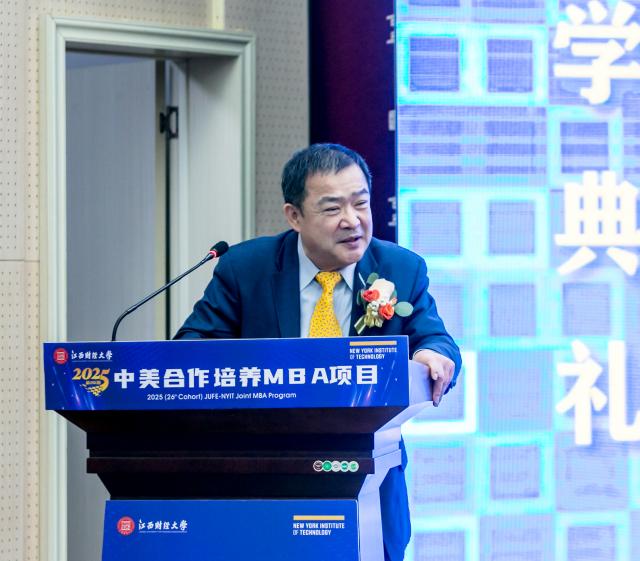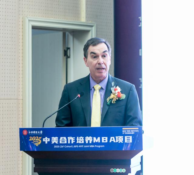 杰瑞·巴伦丁在致辞中回顾了美国纽约理工学院和江西财经大学合作举办MBA项目27年的发展历史,并对江西财经大学的持续支持以及相关领导老师的辛勤付出表示感谢。杰瑞·巴伦丁校长表示中美两校双方秉持共同目标、追求卓越的合作理念,让这段关系不仅是简单的合作,更是深厚稳固的战略伙伴关系——它惠及每一位学生、两所高校,也为我们中美两个伟大的国家搭建了友谊与交流的桥梁。基于美国纽约理工学院的使命与愿景,他鼓励2025级新生把握好每一个机会,积极投身社会,心怀人文关怀精神,与同窗好友建立人脉、切磋学习、携手合作——这里的同窗不仅包括中国同胞,还有来自美国及全球其他国家地区的学子。