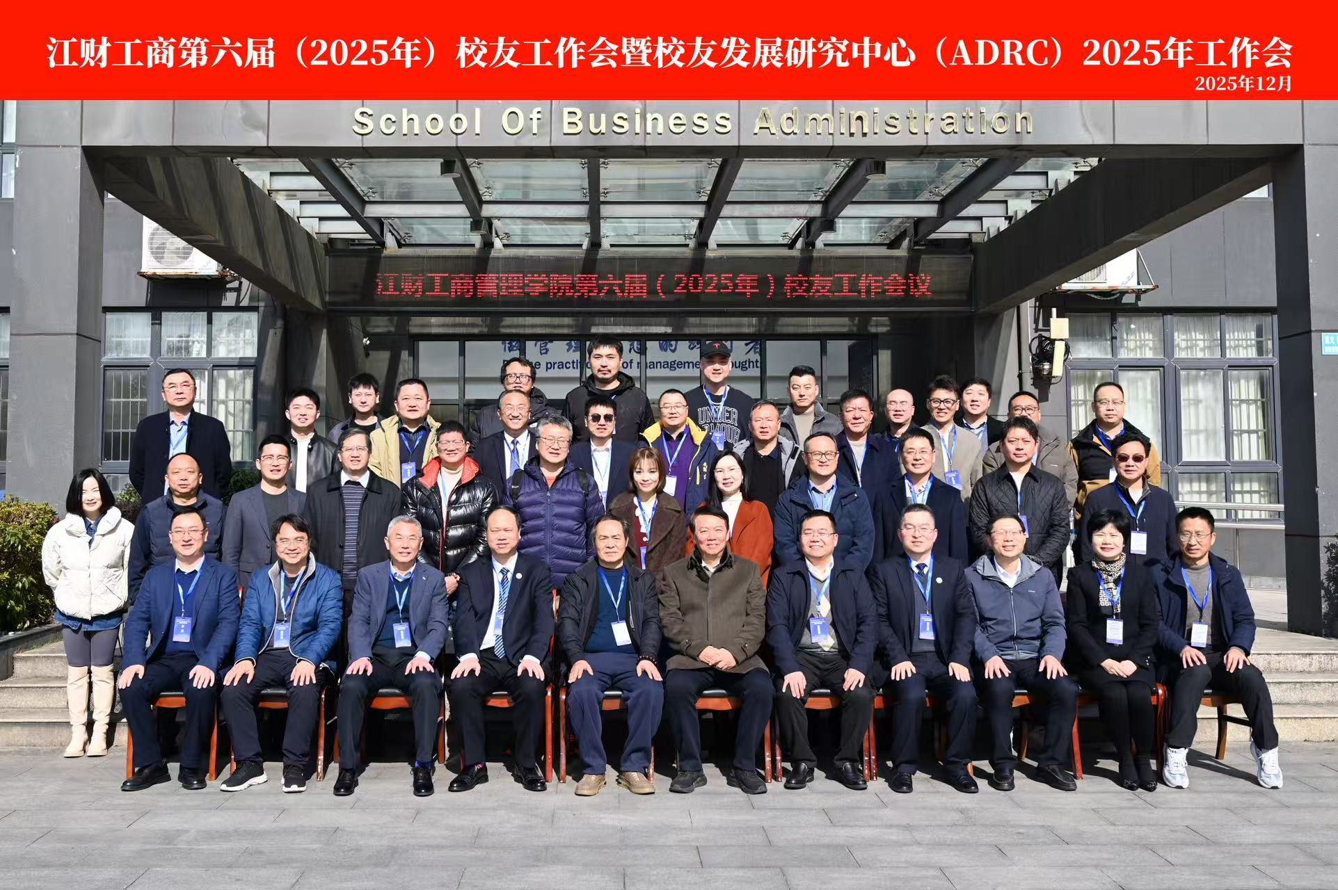 12月28日,工商管理学院第六届(2025年)校友工作会议在南昌举行。校党委常委、副校长李春根,江西省文联原党组书记、80级工经校友郑翔,江西修福会计师事务所有限公司董事长、79级工经校友肖征山,工商管理学院原党委书记熊绍辉,校友联络服务中心主任夏贤锋,工商管理学院院长胡海波,院党委书记贺三宝,企业数字化转型研究与促进中心主任胡海胜,院党委副书记周海燕,副院长陆淳鸿、王鑫、朱建斌以及南昌、北京、上海、广州、深圳、重庆、义乌、澳门、九江、抚州、赣州、景德镇等地校会会长、副会长、秘书长以及校友代表等出席了校友工作会议。会议同期举行江财工商校友发展研究中心(ADRC)2025年度工作会议。
