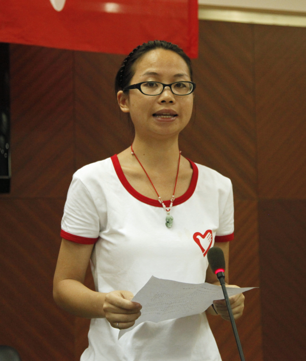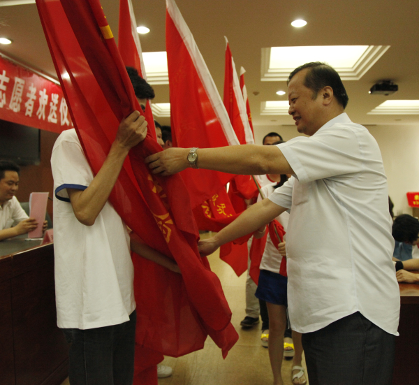 为表彰和鼓励西部计划志愿者,校团委副书记涂艳宣读了《关于表彰2013年大学生志愿服务西部计划志愿者的决定》,授予了石晓霜等46名同学“优秀青年 志愿者”荣誉称号。学工处副处长刘志蓉为志愿者们颁发了3000元的奖金,学工处刘人玮老师为志愿者们颁发了“优秀青年志愿者”荣誉证书。党委副书记胡建 华亲自为志愿者进行授旗。志愿者李娜代表发言感谢母校的培养,并承诺定将以专业所长服务当地建设,不辜负学校和老师们的期望,将江财人的优良传统带到志愿 服务工作中去,用实际行动为母校九十周年校庆献礼。