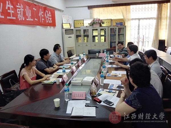 蒋金法代表学校对罗书葵一行表示热烈欢迎,他向来宾详细介绍了我校发展历史、人才培养特色以及学科建设等。财税与公共管理学院、工商管理学院、会计学院、招生就业处等部门分别就本学院有关情况以及我校毕业生就业等工作进行了介绍。