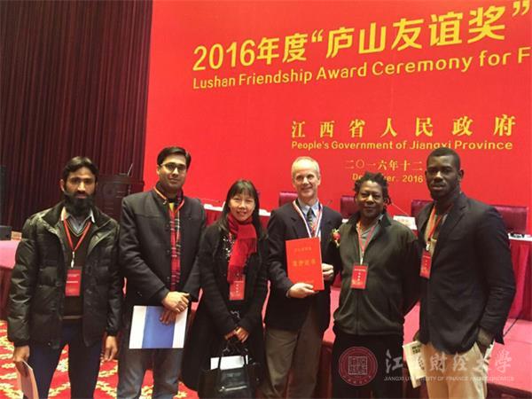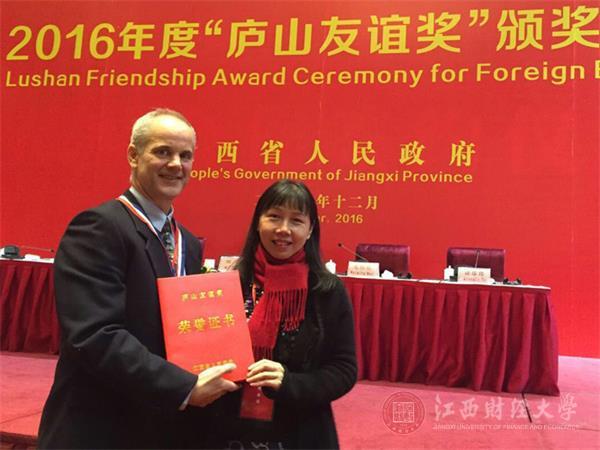“庐山友谊奖”是江西省人民政府授予在赣工作外国专家的最高荣誉奖项,表彰为江西省经济文化发展做出突出贡献的在赣外国专家。在2016年度获奖的15名外籍专家中,有6名来自高校。约翰是我校加拿大籍英语教师,已在校工作两年半时间。他教学工作认真负责,因材施教,在学生心目中享有很高的威望;在专业上他刻苦钻研,努力进取,同时承担了组织外教进行集体教研活动的任务;在个人品行上他从不计个人得失,总能站在他人角度考虑问题,得到了学生、学院和国际处员工的一致认可。本年度约翰喜获“庐山友谊奖”既是省政府、省外专局对外教本人多年在赣从事教育工作所做突出业绩的肯定,也是对我校外管工作的高度认可。