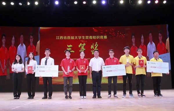6月25日,2018年江西省首届大学生禁毒知识竞赛总决赛在我校举行,6支高校代表队经过层层突围,闯进总决赛再次展开激烈角逐,我校荣获三等奖。副省长、省禁毒委主任、省公安厅厅长秦义,校党委书记王乔出席活动并为大赛颁发奖项。省禁毒委副主任、省禁毒委委员,各设区市禁毒办主任,全省85所其他高校的分管校领导、高校保卫处处长、学工处处长、团委书记,以及部分高校学生代表在总决赛现场观摩了比赛。