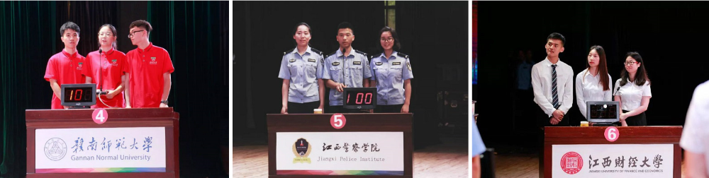 在风险题环节,各支代表队争先选择挑战最高难度的30分题,更是一次次拨动了现场观众的热情。经过此轮激烈角逐,2018年江西省首届大学生禁毒知识竞赛冠亚季军最终出炉。