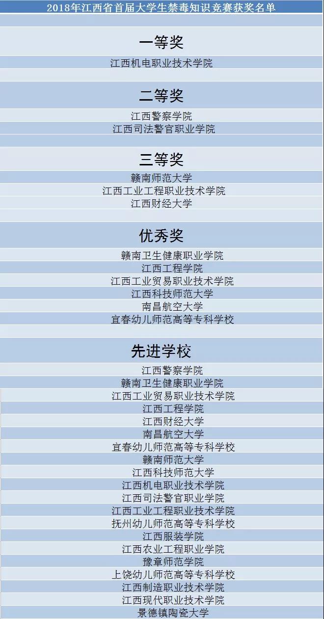 今年初,省禁毒委员会办公室、省教育厅、团省委多次研究措施办法,决定开展以“大学大美、青春无毒”为主题的2018年江西省首届大学生禁毒知识竞赛活动,通过以赛促学的方式,不断加强高校禁毒教育,在高校营造浓厚的禁毒学习氛围。