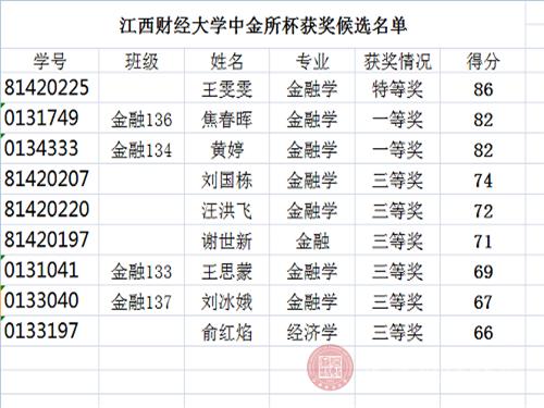 近日,我校9名同学在第三届“中金所杯”全国高校大学生金融及衍生品知识竞赛中获得由中国金融期货交易所、中国期货业协会联名颁发的国家级奖项。金融学院的8名获奖同学中王雯雯同学以高分夺得我校在历届“中金所杯”中的首个特等奖,焦春晖、黄婷同学也获得了一等奖的好成绩,此外另有5名同学获得三等奖。