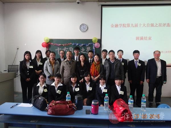 此次比赛中,各位选手们发挥出色,为我们讲述了一个又一个励志而又催人奋进的自强故事,生动淋漓地诠释了自强的涵义,彰显了当代大学生应有的精神面貌。最后,十大选手脱颖而出,成为金融学院第九届“十大自强之星”。