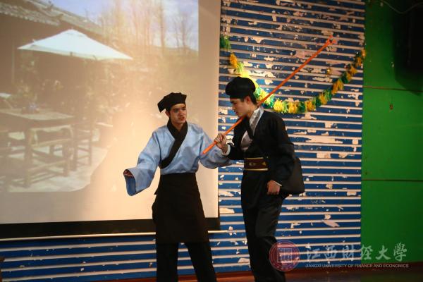 精品班会是国际学院班级活动的一个品牌,在这个活动中,同学们获得舞台锻炼与才艺展示的机会,熟悉彼此,收获成长。国金143班把举办精品班会当作班集体生活中的一件大事,从2014年寒假就开始着手酝酿、筹备,包括主题征集、流程设计、节目筛选。经过数轮讨论与全班表决,最终选定“江湖”作为班会主题。该主题既体现了年轻人的桀骜不驯,又考虑班会主线贯穿始终。新学期开学伊始,以节目为小组,全员出动,同学们开始了紧锣密鼓的节目排练。唱、演、跳、说、玩、诵六大表演形式全线出击,各司其职,精心准备。