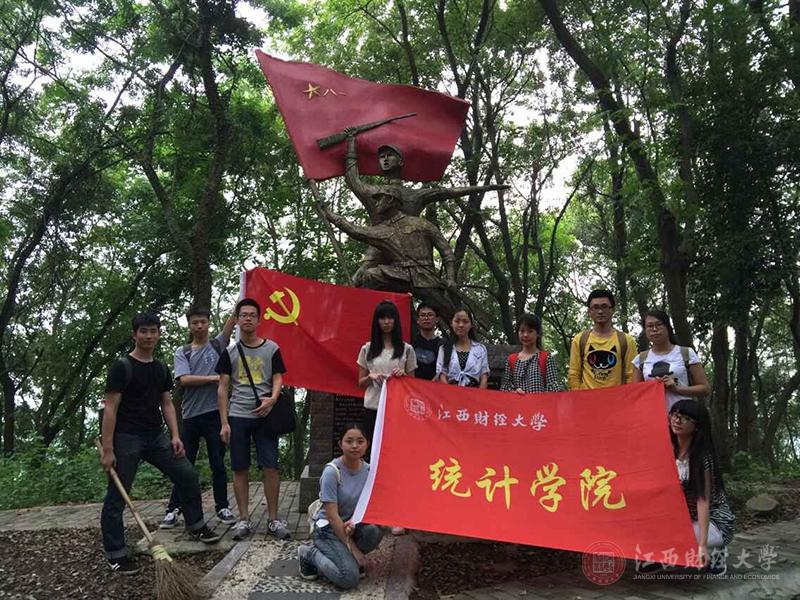 江西财经大学统计学院“三下乡”团队在开展调研服务的同时,不忘进行爱国主义教育,并宣传爱国主义教育,践行社会主义核心价值观,传递青春正能量。在行程中,特地安排了登上上彭村雷公岭,让团队同学们缅怀过去的历史,更加明白身上所肩负的实现中华民族伟大复兴的历史使命,感受抗战胜利的血泪与艰辛。