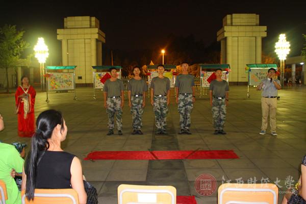 千里共婵娟。工商学院还特邀了分管工商管理学院军训学子的5名教官一起参与当晚的中秋晚会。在晚会互动环节中,5位教官在在座同学的呼声中邀请上台参与游戏“猜灯谜”,平日里严肃的教官此刻就像大哥哥们一样和新生互动着。“教官你们辛苦了!我们永远会记住你!”当376名工商学子忽然向教官齐喊出心声后,我看见有的教官在偷偷的抹眼泪。都说男儿有泪不轻弹,但这12天的军训后的中秋晚会,也让严肃的教官展现了柔情的一面。