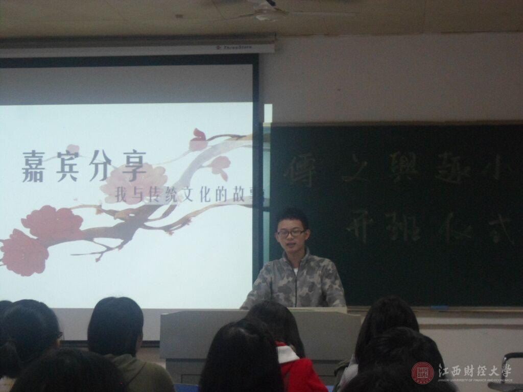 11月9日下午,由我校会计学院传统文化研究社组建的会计学院传统文化兴趣小组在蛟桥园北区第三教学楼举行开班仪式。