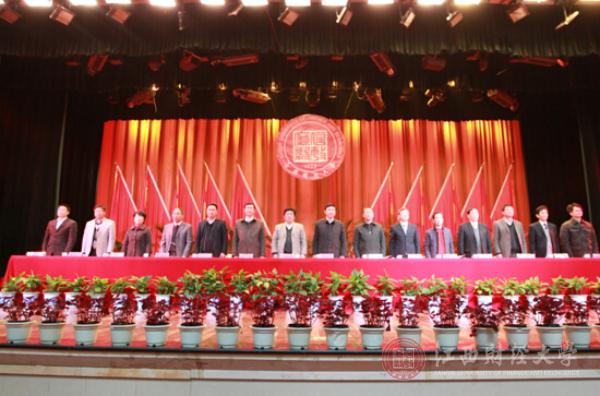 大会在雄壮的国歌中拉开帷幕。工作人员宣读了学院对2014-2015学年度获奖的先进集体和先进个人的表彰决定。出席大会的领导分别为获奖集体和个人颁奖。