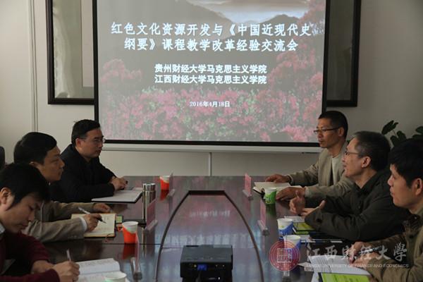 4月18日上午,贵州财经大学马克思主义学院院长何伟福教授来我校考察交流红色文化资源与思想政治理论课教学,马克思主义学院院长陈始发、副院长刘晓泉参加了座谈会。