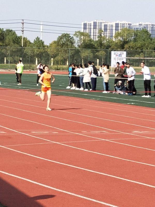 校运会第一天的赛事接近尾声,可运动员们和观众们的热情却丝毫不减。在下午举行的女子400米预赛,工商管理学院运动员周洁斩获第一名!