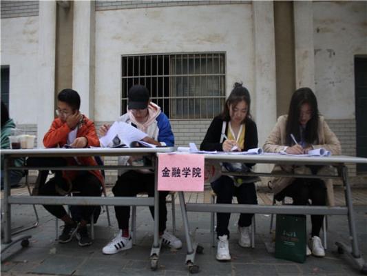 “快!金融学院团体操项目第一。”只见一个娇小的姑娘在拥挤的人群里对着手机那头大喊,兴奋激动的表情在她脸上洋溢。深秋的凉意丝毫没有阻挡这群奔跑的幕后工作者,他们睁大眼睛,伸长脖子,踮起脚尖,奋力去判断我们的参赛选手的成绩。