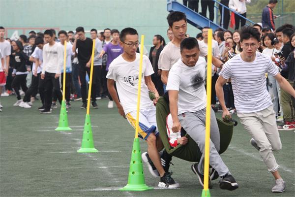 负重搬运接力项目对选手的体力要求极高,对大家的默契程度也有很大的挑战性。比赛开始,裁判一声哨响,金融学院的选手卯足了马力向前冲,眼神坚定,目标明确。虽然操场上人声鼎沸,呐喊声此起彼伏,但沉着冷静的参赛选手丝毫不收影响,他们步调一致,节奏稳定,心中只有一个信念:胜利!他们知道,这不只是个人的荣誉,更是学院的荣光,是金融学子意气风发,蓬勃生命力的象征。