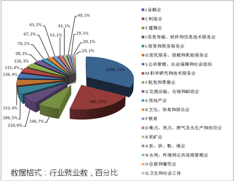 在金融行业就业的1200名毕业生中,其中82%集中于货币金融服务行业,资本市场服务、保险业和其它金融活动就业共215人。(见图3)