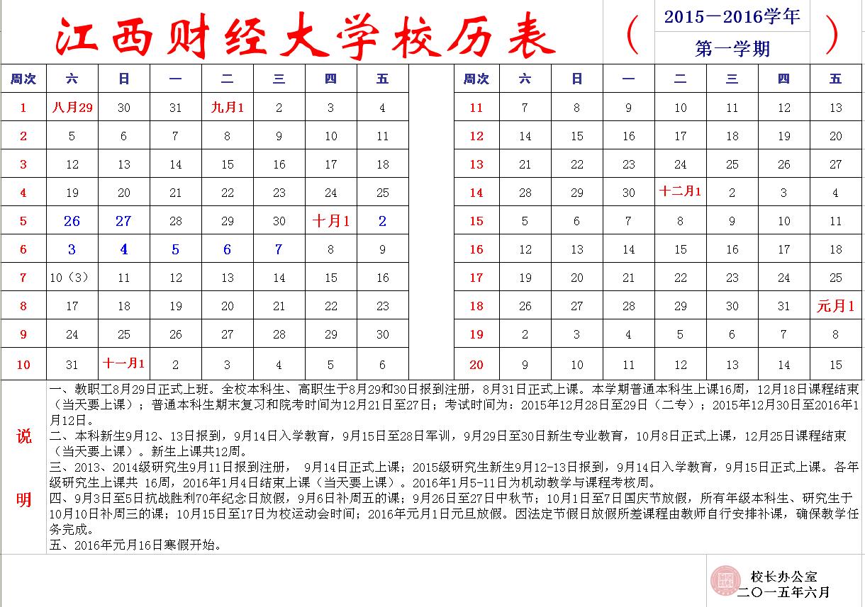 二、本学期普通本科所有年级学生上课16周,3月7日上周三的课、3月8日上周四的课。2015年6月23日课程结束(当天要上课);普通本科生期末复习和院考时间为2015年6月24日至25日;期末考试时间为2015年6月26日至7月3日(含周末)。