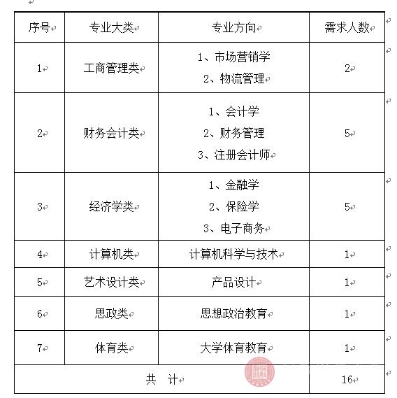 根据学院事业发展需要,现面向全国招聘专职教师16名,具体岗位如下: