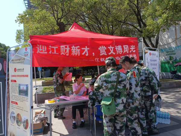 中心在今年首次开展了“迎江财新才,赏文博风光”特色迎新活动,旨在让校史校情在新生中广泛传播。此次活动包含“校史校情知多少”“税票的故事”两个环节,主要向新生展示江财的发展沿革、文化标识、校友文化和税票文化,并现场发放了精心制作的文博馆文创书签。为了充分调动新生的参与性,校史校情讲解团还进入军训场地,向新生们宣传该活动。活动有近400名学生参加,收到了良好的反响。