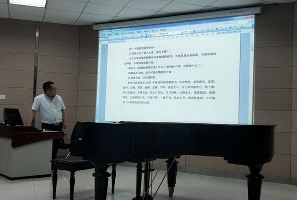 6月22日晚,应艺术学院邀请,中国书法家协会会员、上海交通大学特约研究员黄健松,为艺术学院师生举办了题为《论意》的书法讲座。讲座由艺术学院副院长李民主持。