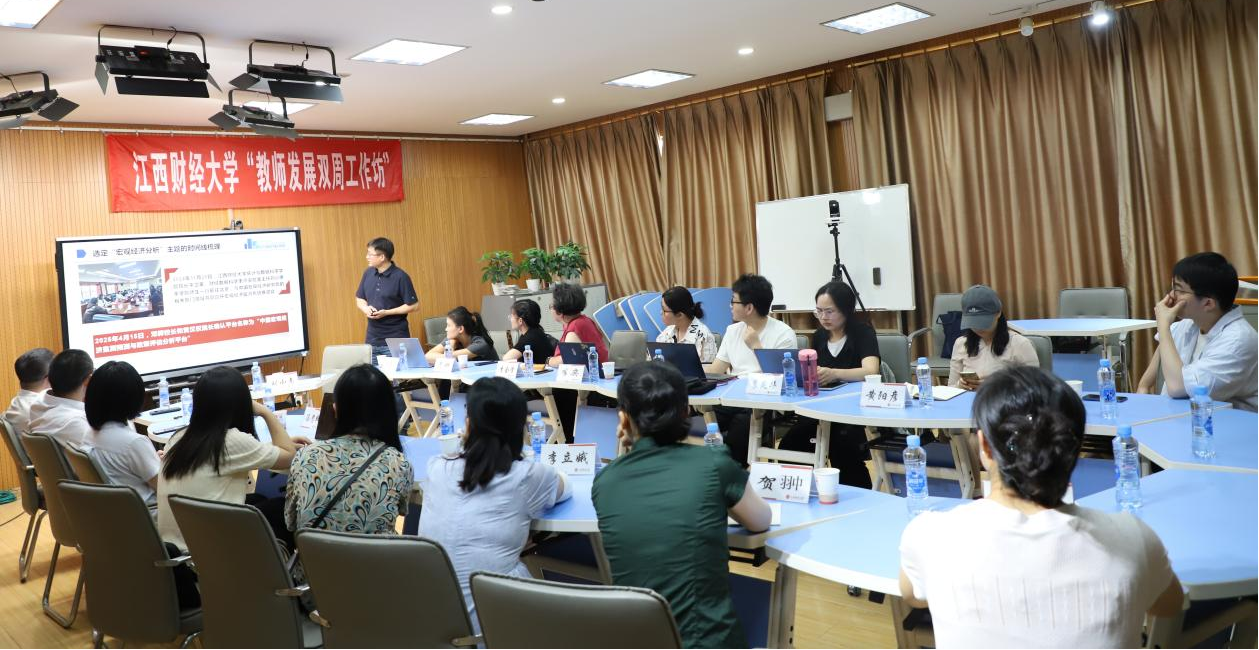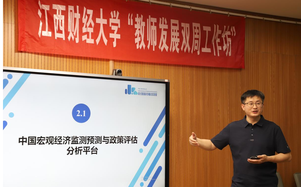 本次工作坊特别邀请到了统计与数据科学学院教授、江西省财经数据科学重点实验室主任刘小惠老师作为主讲嘉宾。在主题分享环节,刘教授围绕跨学科交叉的必要性、自己实验室正在开展的跨学科交叉研究等方面展开讲解,详细介绍了中国宏观经济监测预测与政策评估分析平台的核心内容、平台建设的意义、平台建设任务的分解过程以及平台建设的预期成果。他以丰富的案例和生动的语言,阐释了数据在跨学科研究中的核心地位,以及数学在不同学科领域中搭建联系的桥梁作用,为在场教师提供了全新的视角和思路。随后的交流互动环节气氛热烈,教师们积极提问,就自己在跨学科教学与科研中遇到的问题、困惑与刘教授进行了深入探讨。