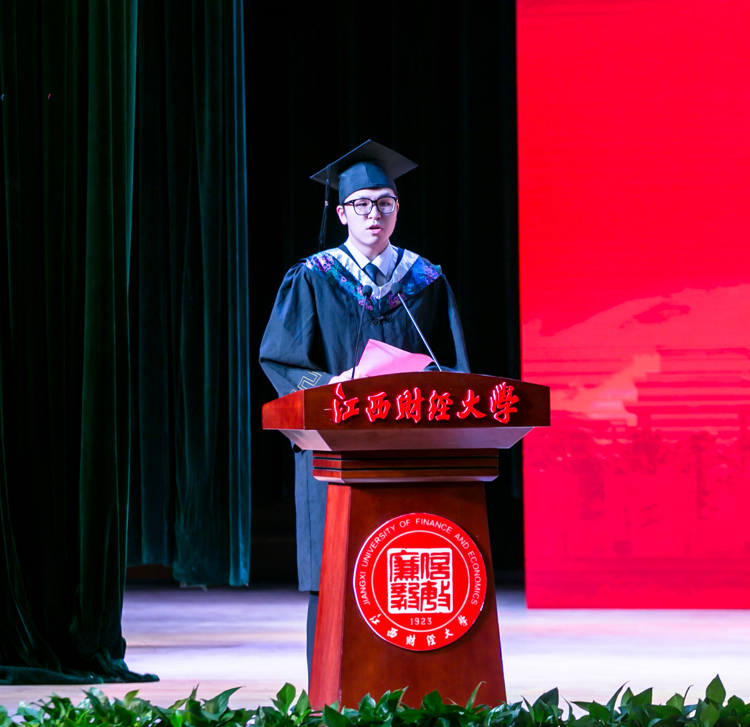 曾经,我们怀揣着不同的梦想,汇聚于江财,我们都希望在这里见天地之广阔,见内心之真我,为未来的远航积蓄力量。我依旧清晰地记得,在四年前入学时的开学典礼上,邓辉校长以“踏歌而行,光耀江财”为题深情寄语:“我们只有成就大学生之‘大’,才能成就大学之‘大’。”这四年,在服务同学的岗位上,我们担当责任、服务奉献,践行了甘为人梯的奉献精神;在追求卓越的学术道路上,我们潜心钻研、上下求索,磨砺了探索未知的求真品格;在挑战自我的竞赛征程中,我们迎难而上、百折不挠,锤炼了经世致用的专业素养。正是这一次次突破边界,挑战“旧我”,一次次实践摸索,成长“自我”,汇聚成今日信心满怀、即将扬帆远航的“新我”。如今回望,在四年的学习与生活中,江财赋予了我们逐梦的热情、启航的担当、奔赴的底气,成就了大学生之“大”。此刻,或许我们对未来的学习、工作尚有未知,对社会、生活偶有顾虑,但只要我们以江财所学为帆,带上“信敏廉毅”启航,一切困扰都将如烟云般消散。带着母校的烙印、师长的嘱托、家人的期望,我们将勇敢地驶向梦想的彼岸,奔赴壮阔的山海!