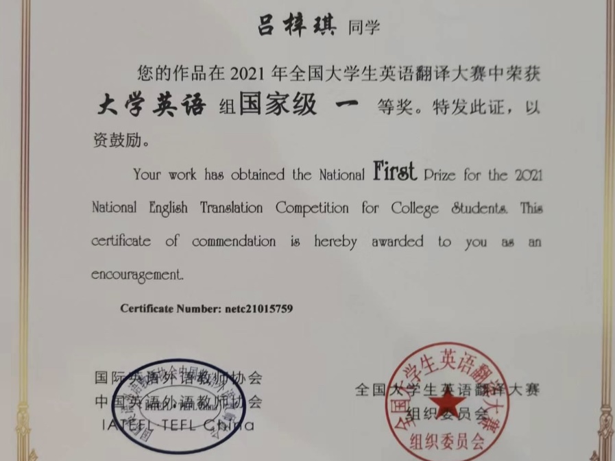 【个人简介】吕梓琪,会计学院会计学(ACCA方向)2021级本科生,本科加权均分91分,专业排名前3%。曾在大三时前往芬兰奥卢大学交换学习半年,相关交换学习课程均获得满分。本科期间,获得初级会计职称,并在一年内通过ACCA国际注册会计师考试。参与全国高校商业精英挑战赛、“燕兴杯”大学英语应用能力竞赛、中国国际大学生创新创业大赛、全国高校商务英语竞赛等各类竞赛,并获得全国大学生英语翻译大赛国家一等奖、全国高校商业精英挑战赛全国二等奖等,累计获得20余项奖项。现顺利以初试、复试均第一名的成绩考入浙江大学MPACC(会计专硕)。