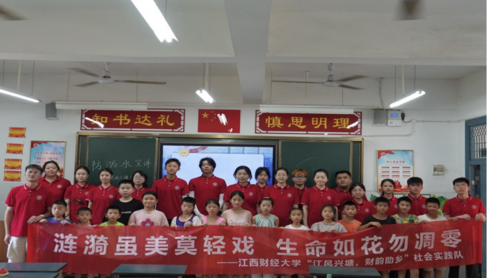 我校“江风兴塘 财韵助乡”暑期实践团前往南昌市新建区大塘坪乡开展“平安暑假‘泳’不冒险”防溺水一日攻坚行动”,以“乡—村—校”三级联动,为青少年织密安全防护网。“江风兴塘,财韵助乡”实践团以“六不一会”防溺水知识速成讲座为引入,对危险水域识别与规避、紧急情况正确应对方法等进行详细讲解。理论宣讲结束后,队员们纷纷化身“游泳教练”,耐心指导学生学习游泳基础技能,让“平安暑假”承诺照进现实,为乡村孩子筑牢成长堤坝。