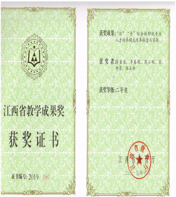 三是特色育人标杆。如江西省名师工作室(匡小平教授领衔)、省级一流课程《税票鉴赏》(戴丽华团队)。