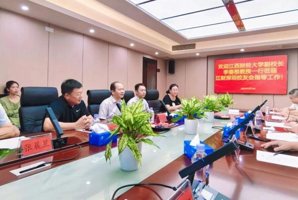 副校长李春根,信息管理与数学学院、深圳研究院负责人,江西省人民政府驻广东(深圳)办事处党组成员、副主任胡汉羽及办公室干部张晨昱出席会议。深圳校友会会长肖祖核,执行会长杨道威、庄永坚、刘建明,及江裕阳、伍宇韬、陈正康等校友会骨干代表共同参与座谈。