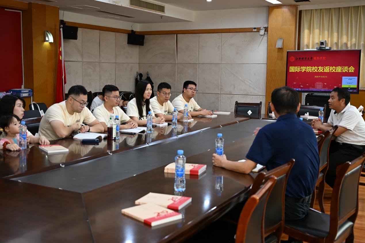 国际学院组织返校校友会在学院一楼会议室召开座谈,学院党委书记涂远武、党委副书记王明华与返校校友座谈,追忆青春岁月,共叙同窗情谊。涂远武代表学院对校友们的归来表示热烈欢迎,并关切询问了大家的工作和生活近况。他表示,校友是学院的宝贵财富,学院始终关注校友们的发展,并欢迎他们常回母校看看,有任何需求都可以向学院寻求帮助。王明华向校友们介绍了近年来学院的发展变化,并感谢校友们对母校的关心与支持。此外,2011级国会1班还自发举办了主题班会。