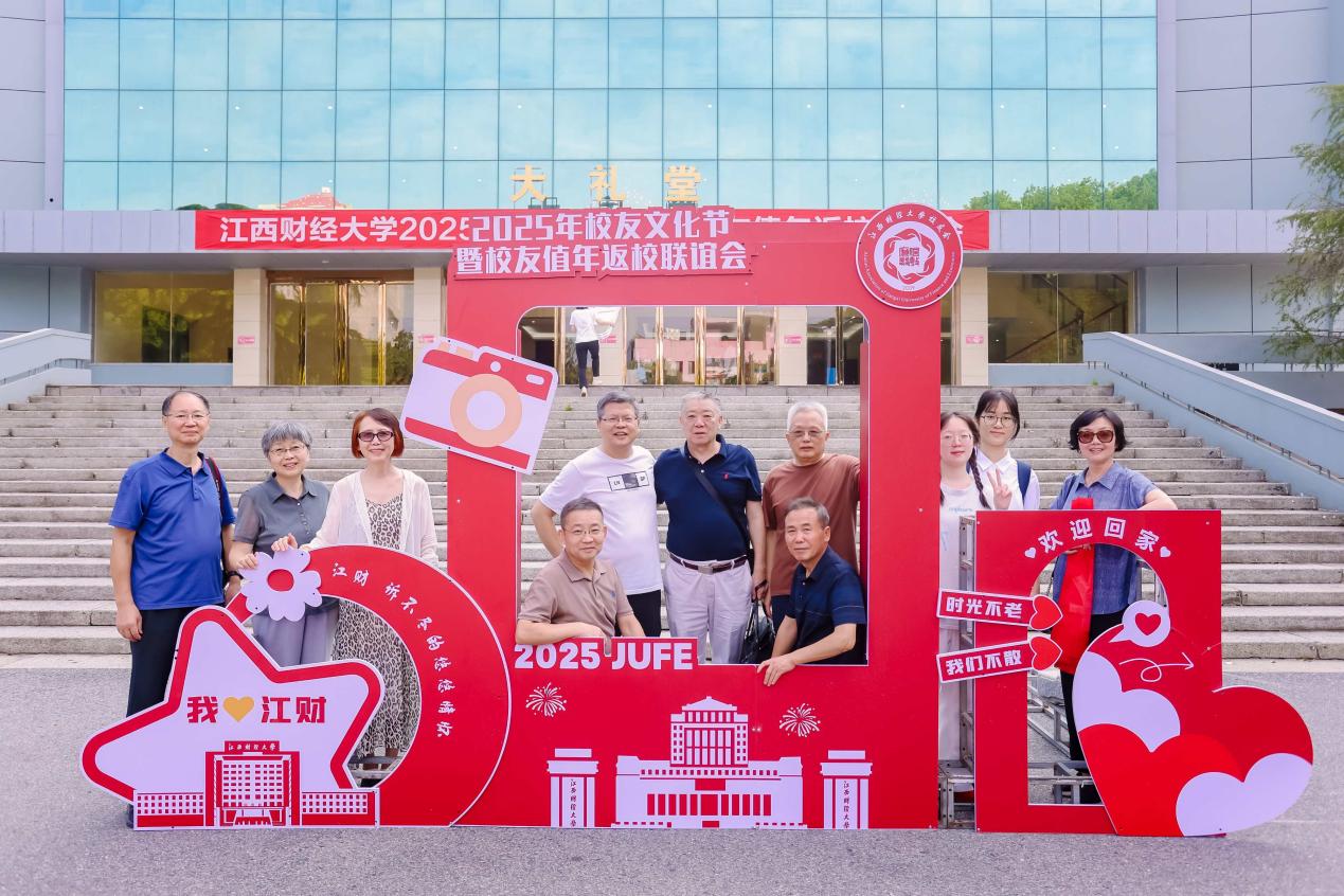 学院在大厅布置了“欢迎校友回家”“归期已至江财等你”“相逢一笑仍是少年”等创意打卡道具,明快的色彩、充满青春感的标语,瞬间勾起校友们的校园回忆。校友们纷纷驻足立牌前,或手持“相逢一笑仍是少年”手牌拍照,定格与母校重逢的美好;或在志愿者的协助下拍摄合影,重现青春模样。同时,学生志愿者全程陪伴,不仅为校友拍摄留念,还引导大家参观学院、介绍发展新貌,让校友们在重温校园时光时,也真切感受到学院的成长与温度。从创意打卡到暖心导览,一系列举措为校友搭建起回忆青春、联结情谊的平台,让返校日成为一场充满归属感的温暖相聚,也传递出学院对校友的诚挚关怀。