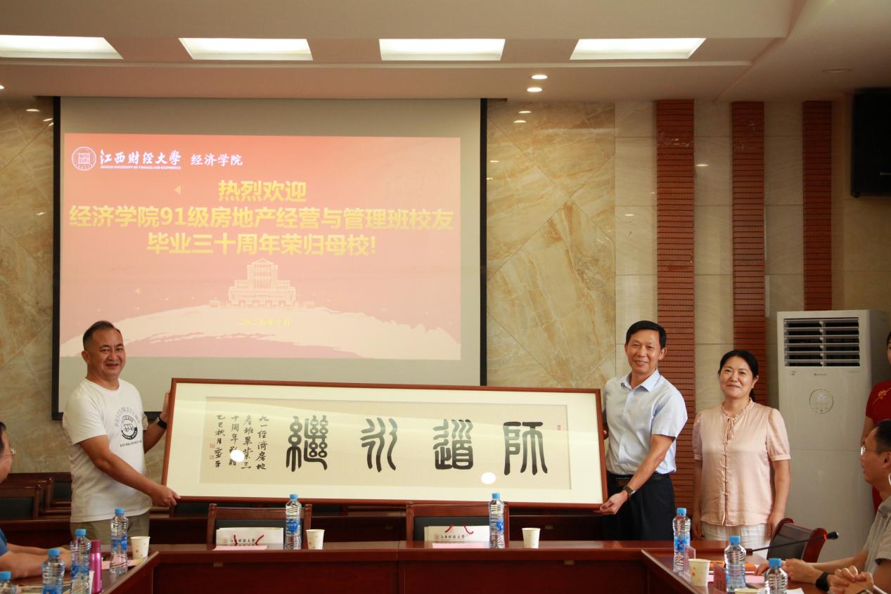 一份精心准备的学院纪念品,包含融合学院标识与江财元素的专属徽章、内印校园风景与学院发展历程的纪念笔记本,于细节中彰显心意,有效增强了校友的身份认同感和归属感。