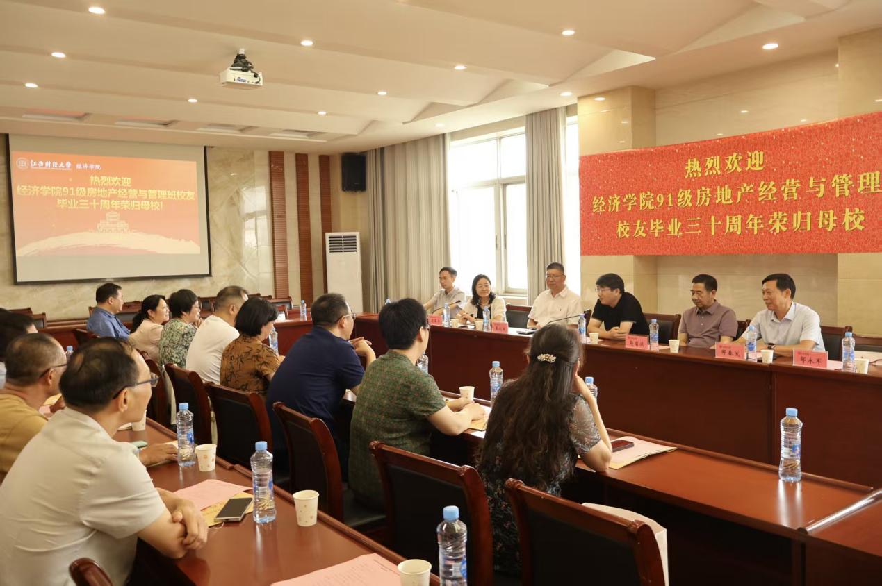 经济学院举办1991级房地产经营与管理专业校友毕业30周年返校座谈会。校长邓辉应邀出席座谈会。学院院长张利国、党委书记邹春发、副院长曾永明,时任班主任蒋岩波与20位校友参加会议。会议由院党委副书记远翠平主持。