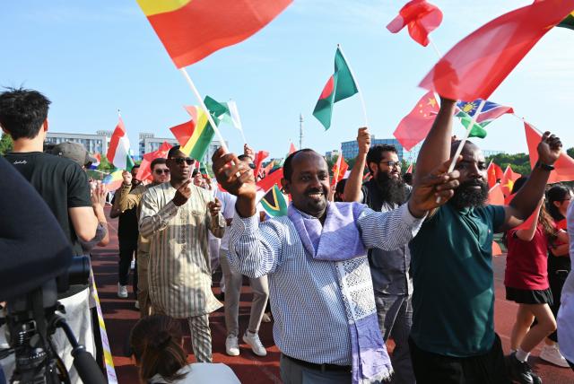“It was really fun to be in the parade and see all the gorgeous people around!”来自巴基斯坦的留学生Sumbal Bhayo兴奋地分享道。在与我交流的过程中,她的眼眸亮晶晶的,仿佛藏着无数的星辰和故事。“并且能在这里交到一个中国朋友,是今天最棒的惊喜。体育真的拥有连接世界的力量。”她的话语中充满了真诚和感动。是啊,体育无国界,它就像一条无形的纽带,将不同肤色、不同文化的人们紧紧联系在一起;友谊也没有界限,它如同清澈的溪流,在人们的心间流淌,滋润着每一颗渴望交流与理解的心灵。就让这份热爱与情谊,如涓涓细流般,在我们的心间缓缓流淌,永不干涸。