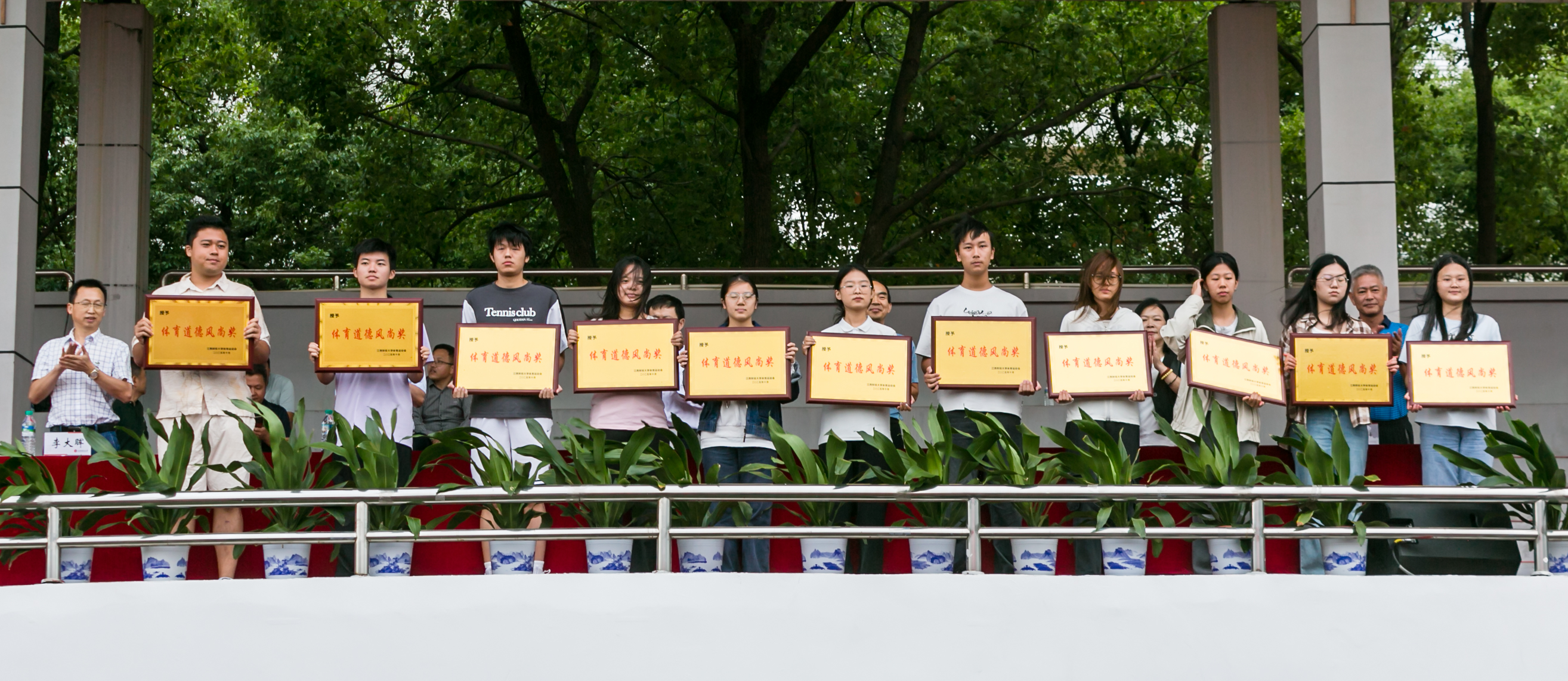 党委宣传部副部长李大晖宣布体育道德风尚奖获奖名单。获得学生体育道德风尚奖的先进集体分别是经济学院、财政税务学院、金融学院、统计与数据科学学院、工商管理学院、会计学院、信息管理与数学学院、法学院、软件与物联网工程学院、虚拟现实(VR)现代产业学院、国际学院。