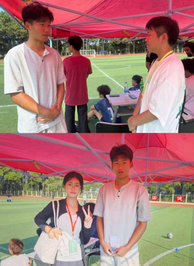 中场休息时间到,教练开始了战术安排与轮换,针对对手制定下半场比赛的打法,而在场外还有这么一群人,他们维持着赛场秩序并保证赛事的公平公正,虽然未亲身参与踢球,但却在自己的岗位上发光发热,用自己的实际行动撰写自己的篇章。其中来自体育学院的裁判马雨桐这样说到,他之所以当裁判是因为他热爱足球并能够加深他对足球的理解。而正是这份热爱让他在足球赛事开始前的各项准备工作中满怀热情。