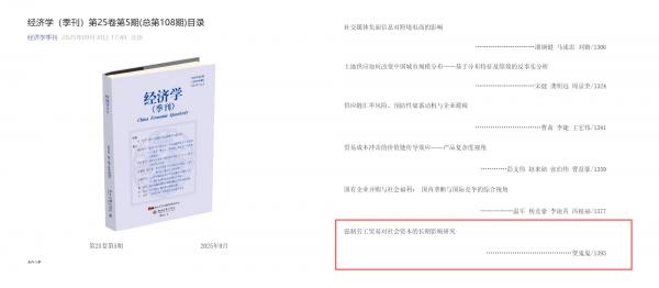 近日,贺嵬嵬博士独立完成的论文《强制劳工贸易对社会资本的长期影响研究》发表于国内权威期刊《经济学(季刊)》2025年第5期。