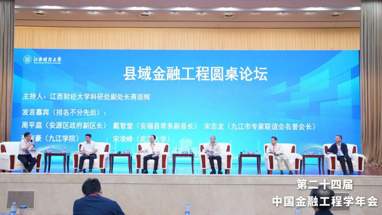 在县域金融工程圆桌论坛环节,吉安市安福县常务副县长戴智堂、萍乡市安源区副区长周平庭、九江市专家联谊会名誉会长宋志龙、九江学院李拔豪、武汉大学宋凌峰等围绕政府性融资担保的“准公共”定位、地方实践案例、“政府——金融机构——科研机构”三角协同、供应链金融与数字乡村金融系统等议题展开交流,提出在风险可控前提下提升普惠覆盖面与政策传导效率的建议。