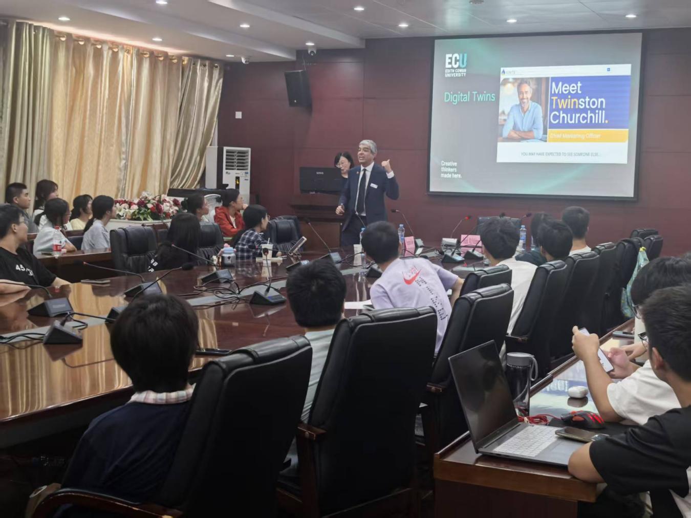 来访期间,伊迪斯科文大学人文艺术学院国际战略主任Mark McMahon与商业与法律学院商业系统与运营副院长Flavio Macau前往社会与人文学院为我校师生分别带来专题讲座,主题涵盖人工智能与创造力、生成式AI与社会问题等前沿领域。18日,代表团全程参加交流周开幕式,在海外留学展上提供一对一咨询,并在以“携手·共生:全球化时代的大学伙伴关系”为主题的院长论坛中与各学院代表就学术合作、师生交流等项目进行深入探讨。