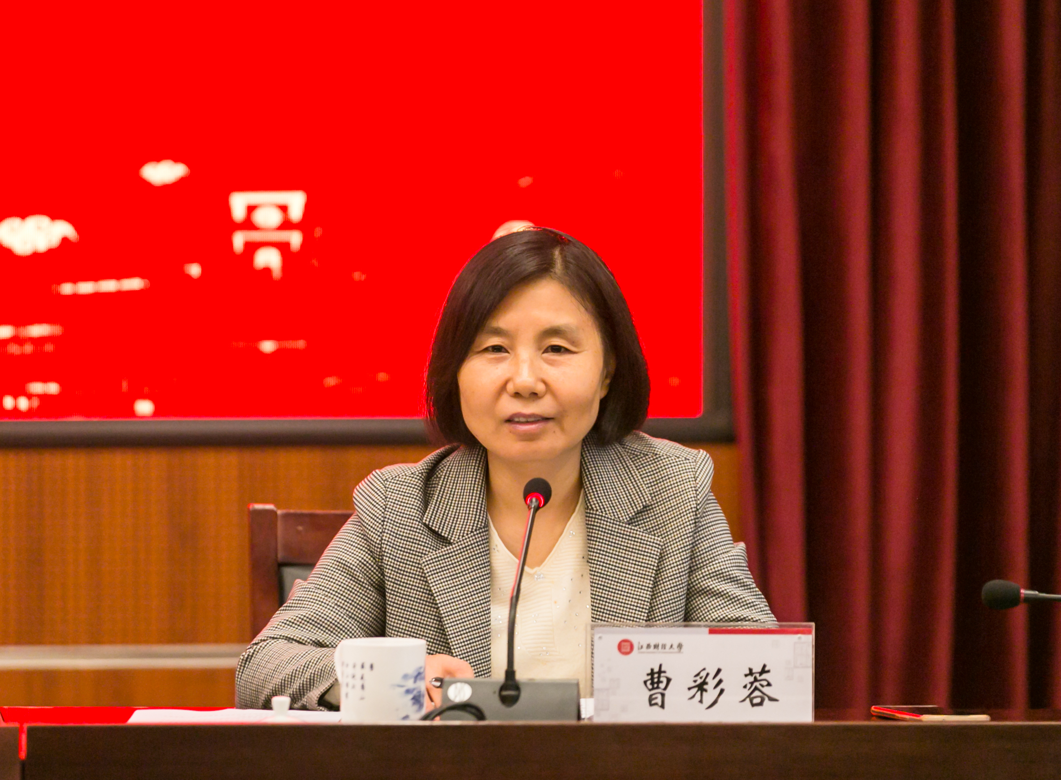 曹彩蓉高度评价江西财经大学社科联近年来工作成效,指出学校在社科研究、人才培养、学术交流领域成果丰硕,为全省哲学社会科学事业发展作出重要贡献;并表示省社科联将持续深化与江西财经大学的合作,提供更多的支持,为学校事业高质量发展和奋力谱写中国式现代化江西篇章作出新的更大贡献!