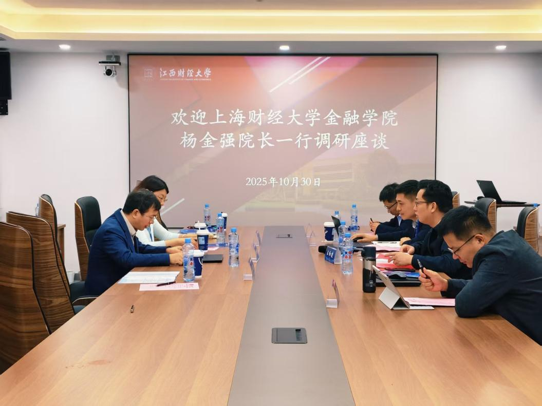 方玉明对上海财经大学金融学院院长杨金强一行表示诚挚欢迎,随后回顾了江西财经大学的办学历程、学院建设及学科布局,重点介绍了学校在人工智能与数字经济领域的学科优势。他指出,学校正全面投身第三次创业征程,致力于建设世界一流学科。同时,他高度评价了长期以来上海财经大学与江西财经大学在金融学科的学术研究与人才培养方面的深厚合作,并对两校继续深化合作、共同推动金融学科高质量发展寄予殷切期望。